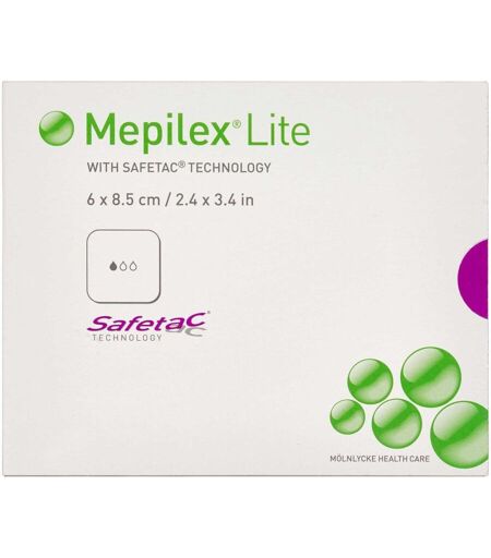 Mepilex Lite Tynd selvklæbende absorberende skumpude, som huden kan ånde igennem. Til let- og ikke væskende sår. Kan klippes til efter behov. Kræver fiksering (Tubifast, Mefix eller Mepitac). Produktet hæfter med den unikke og bløde silikoneklæb Safetac. Du vil derfor kunne genklæbe produktet, hvis du har løftet det fra huden for at tilse såret. Du får en hurtigere opheling af såret og en pænere ardannelse. Produktet efterlader ingen klæberester på huden og gør ikke ondt at tage af. Dosis og anvendelse Til skrøbelig hud (eksempelvis pga prednisolonbehandling) samt ved hudreaktioner efter strålebehandling. Kan også anvendes til hudafskrabninger, diabetiske fodsår og brandsår. Kan anvendes, hvis du er allergisk overfor almindeligt limklæbestof. Klassificeret som Produktet er medicinsk udstyr ...