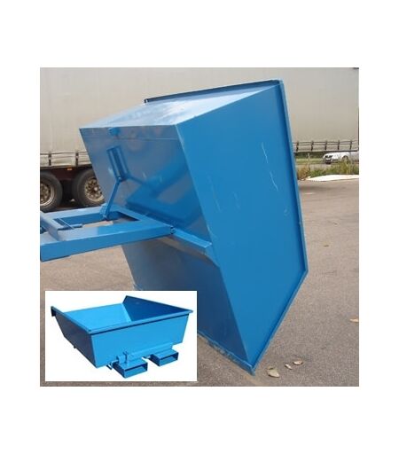 Tipcontainer lav, 900 liter, blå Til affald og kildesortering Tipcontainer til f.eks. papir, plastik, glas o.lign. En tip container giver praktisk og effektiv affaldshåndtering, da den kan stilles hvor man ønsker det, og let tømmes. Ved tilkøb af genbrugsmærkaterne i mange farver, gives der mulighed for en miljørigtig og overskuelig affaldssortering. Specifikationer: Farve: Blå - Pulverlakeret Volume: 900 liter Kapacitet: 1500 kg. Mål i mm (LxBxH): 1500x1570x520 Egenvægt: 175 kg Automatisk returgang og låsning Kan flyttes med truck eller gaffelløftvogn (min/maks afstand mellem gafler - 150-680 mm) Hjul medfølger ikke - kan tilkøbes CE mærket ...