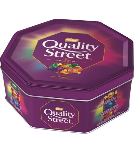 Nyd de lækre Quality Street chokolade/toffee Lækker og populær blanding af chokolade og toffee, hvor hvert enkelt stykke er indpakket i farverigt papir. Dåsen indeholder 12 lækre varianter, så der er noget for enhver smag. Perfekt til mødelokalet eller i en skål som forkælelse af dine medarbejdere. Indhold: 900 gCa. 85 stk. ...