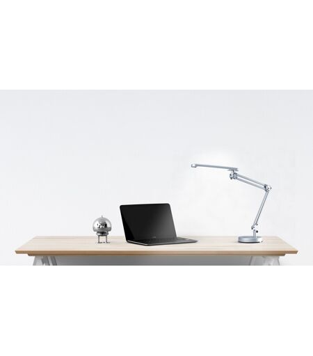 LED 4 Stars bordlampe 4 Stars bordlampen er en moderne lampe, som udmærker sig ved at være nem at indstille og et meget lavt energiforbrug på 6W. Den 2-leddet arm er vægtbalanceret, så lampehovedet altid står vandret på bordet, og giver et godt lys til alle opgaver. Lampen er udstyret med LED-teknologi, hvilket betyder at lampen er energibesparende med op til 80% i forhold til traditionelle bordlamper, samtidig skal man nu ikke tænke på at udskifte lyskilden, da den er konstrueret til at holde 20.000 brændtimer, som svarer til ca. arbejdsdage. Lampen kan fås enten med bordfod eller med bordklemme og i farverne sølvfarvet eller sort. Den lyser med 5000 kelvin så den giver et perfekt lys til arbejdspladsen i de mørke måneder. Specifikationer: Lyskilde 6W LED Brændtimer: 20.000 Armlængde 28+28 cm Farvetemperatur: 5.000K Lumen: 394 Farve: Sølvfarvet Montering: Bordfod ...