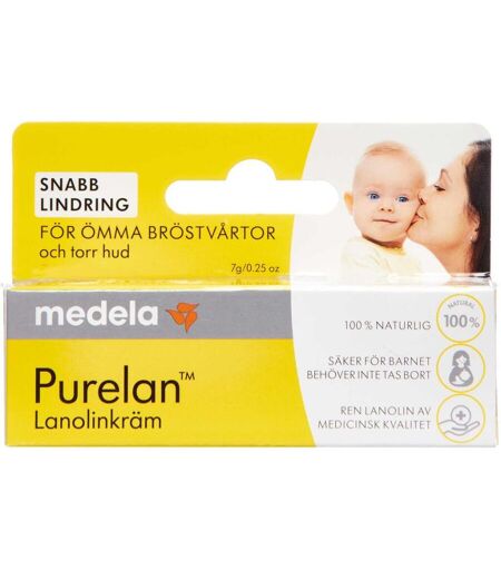 Purelan Lanolincreme 7 g Purelan Lanolincreme hjælper med hurtig lindring til ømme brystvorter og tør hud. Purelan Lanolincreme hjælper med til at genoprette hudbalancen ved at forstærke hudens naturlige barrierer. Produktet er 100% naturligt og er fri for tilsætningsstoffer, konserveringsmidler, parabener og parfume. Produktet er sikkert for barnet og skal ikke tørres af. Dosis og Anvendelse Brug efter behov. Påfør produktet på de områder, hvor det føles nødvendigt. ...