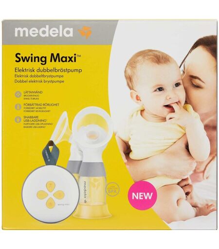 Medela Swing Maxi Elektrisk Brystpumpe har få dele, som er lette at rengøre, hurtigere usb-opladning og er brugervenlig. Medela Swing Maxi Elektrisk Brystpumpe er en elektrisk brystpumpe, der er beregnet til at blive anvendt af ammende kvinder, som pumper og opsamler mælk fra deres bryster. ...
