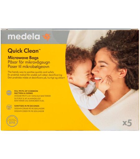 Medela Quick Clean Poser er mikroovns poser til dampsterilisering af pumpeudstyr. Vejledning for vandmængde og minutter i forhold til WATT findes i æsken. Anvendelse: Medela Quick Clean Poser anvendes til dampsterilisering af f.eks. pumpeudstyr. Hver pose kan bruges 20 gange.Kan foldes sammen så den let pakkes i ferietasken.Passer til alle mikroovne ...