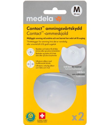 Medela Contact brik - medium 20mm 2 stk. Medela Conta ct brik er brystvortebeskyttere, som hjælper til ved ammevanskeligheder, der skyldes flade, indadvendte, ømme, sprukne eller sårfyldte brystvorter. Brikkernes specielle form gør, at barnet kan mærke moderens duft og hud under amning. Dosis og anvendelse Kan anvendes ved behov. ...