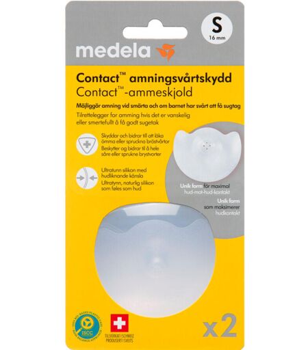 Medela Contact brik er brystvortebeskyttere, som hjælper til ved ammevanskeligheder, der skyldes flade, indadvendte, ømme, sprukne eller sårfyldte brystvorter. Brikkernes specielle form gør, at barnet kan mærke moderens duft og hud under amning. Anvendelse: Kan anvendes ved behov. ...