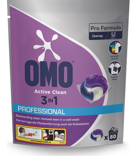 Omo Pro Active Clean 3i1 Vaskekapsler, 80 Kapsler