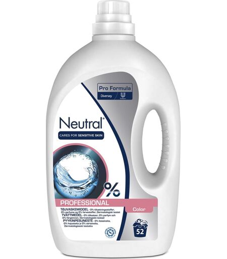 Neutral Professional Colour er et flydende vaskemiddel udviklet til professionel rengøring af farvede tekstiler som arbejdstøj, håndklæder og linned. Det fjerner effektivt snavs og pletter – uden at gå på kompromis med hudvenlighed eller farvernes holdbarhed. Perfekt til miljøer, hvor både hygiejne og hensyn til sensitiv hud er i fokus. Fordele ved Neutral Colour Vaskemiddel Effektiv rengøring af farvede tekstiler Uden parfume, farvestoffer og optiske blegemidler Bevarer farverne vask efter vask Godkendt af Asthma Allergy Nordic – skånsom mod huden Høj ydeevne og hudvenlig formel i ét Neutral Colour er en del af Pro Formula-serien, udviklet i samarbejde med Diversey og Unilever. Den parfumefri formel er dermatologisk testet og særligt velegnet til personer med sensitiv hud. Med sin skånsomme sammensætning og effektive rengøring er den ideel til daglig vask i både private og professionelle sammenhænge. Specifikationer Indhold: 2,62 liter Antal vaske: Op til 52 Velegnet til: Farvede tekstiler – fx arbejdstøj, linned og håndklæder Uden parfume, farvestoffer og optiske blegemidler Godkendelser: Asthma Allergy Nordic Dermatologisk testet ...