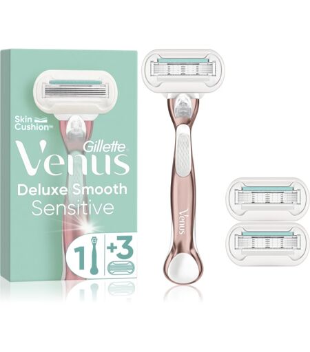 Gillette Venus Deluxe Smooth Sensitive Barberkniv + erstatningshoveder RoseGold 3 stk.
